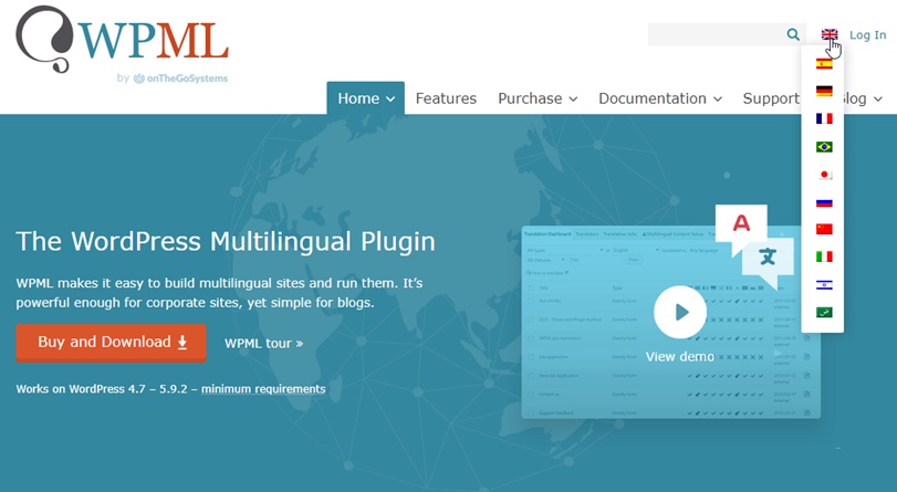 但是,有一些高级插件使翻译过程更加容易。我们的首选是Weglot,因为它提供了自定义翻译API以及由推荐的提供商升级为专业翻译的选项。我们也喜欢WPML,它有助于简化您网站的创建和管理多种翻译的过程。